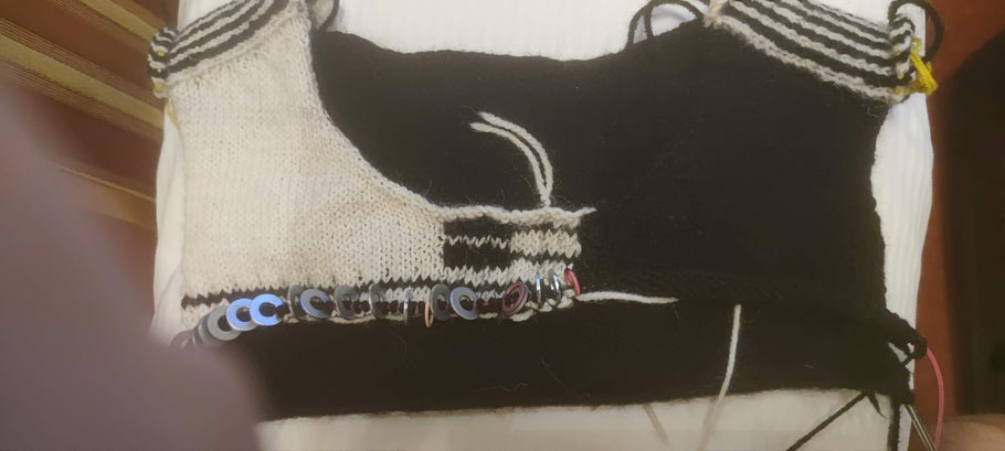 Well, Sometimes my designs lead to design dilemmas. The photo is a preview of my next design, the EGBDF sweater. You might recall I've already kni...